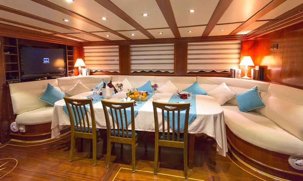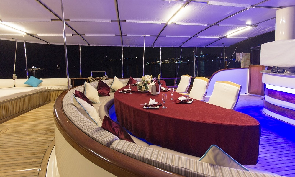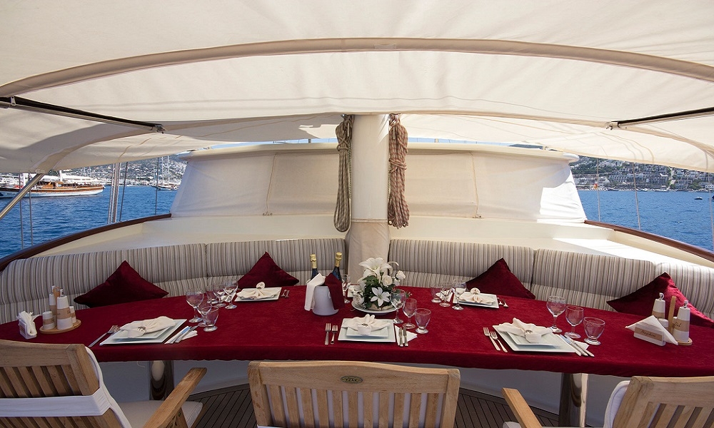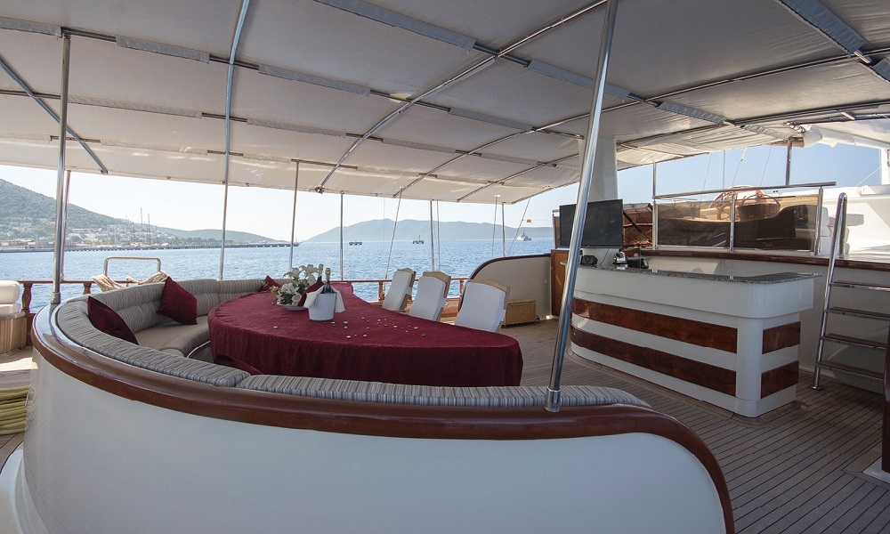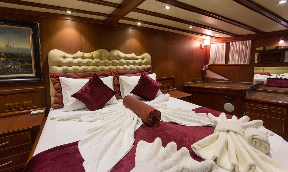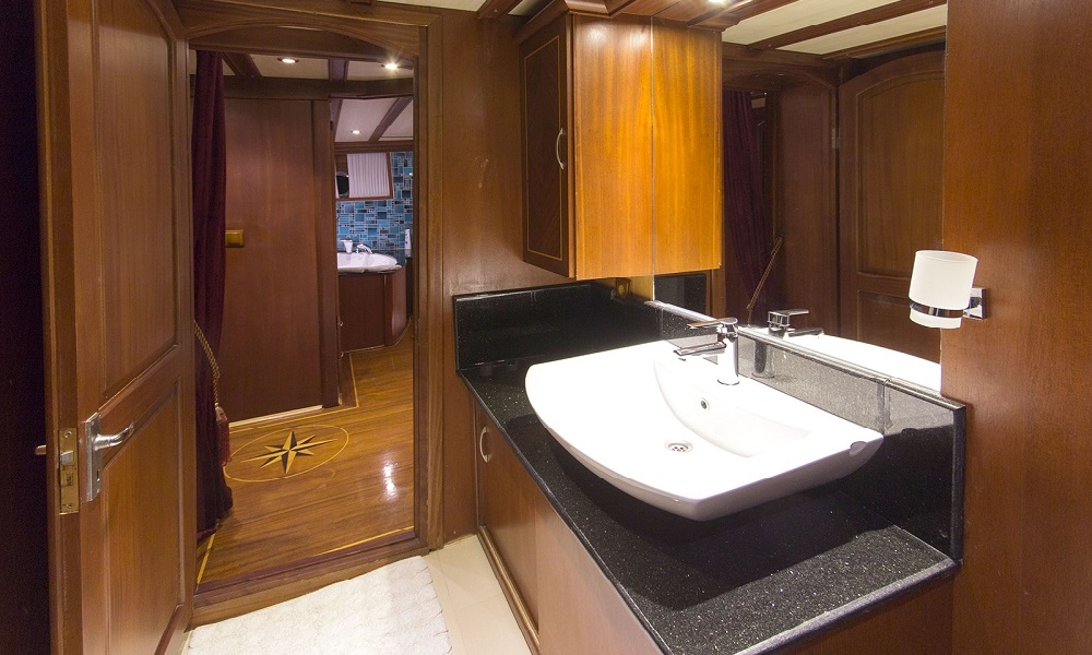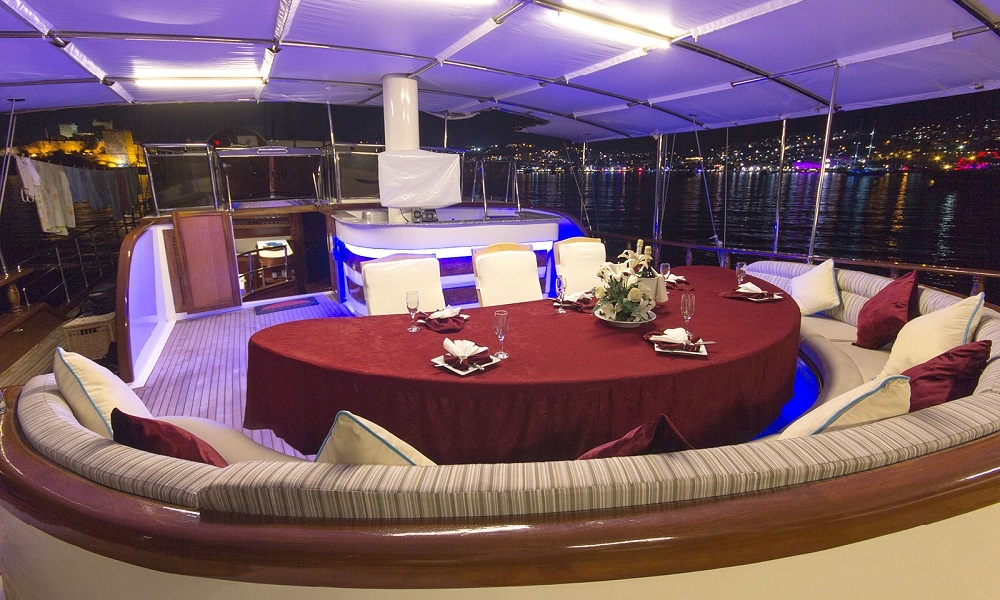 BERRAK SU has been built after a three years construction period at 2008 and fully renovated in Marmaris boat yard in 2010. This luxurious boat is ready for cruising in Mediterranean coasts upto 12 guests that can accommodate in 4 master cabins and 2 VIP master cabin with jacuzzi. Interior and exterior design of the boat offer 5 star comfort at the sea. Whether you want to enjoy a large dinner; to sunbath indivudually or watch TV there is always a perceft spot for you onboard. DVD player, LCD screen in lounge area with sattalite connection is ideal to keep yourself up to date and also an alternative activity for kids onboard. Luxury and pleusure in turquoise waters of Turkey and the Greek Islands with delicious meals from the Chef will make your Mediterranean Holiday memorable.