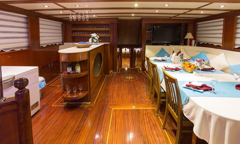 These boats are build and designed to offer comfort. All gulets have cabins with own showers and toilets, spacious saloon, kitchen, and spacious on decks. In front of the boat, there is space for sunbathing while at the back you have enough space to eat and rest under the shade made by awning.