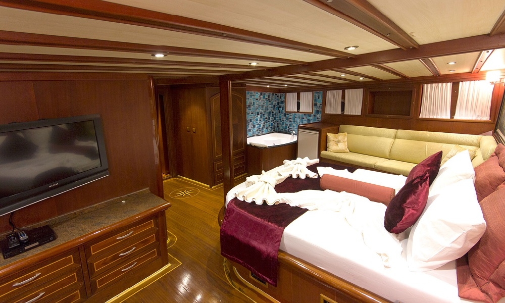 About Turkish gulet boats: Gulets are strongly influenced by traditional Mediterranean motor sailing boats, adapted for modern use. Some gulet boats that have really good sail possibilities and besides the Turkish gulet boats, that offer extreme luxury, with Jacuzzis on board or/and in cabins, DVD player and TV in every cabin and saloon and complete VIP treatment.